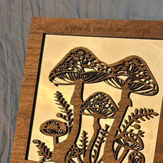 Fabriqués artisanalement avec soin, en bois découpé et gravé au laser, ils allient esthétique naturelle et puissance des mots. Que vous choisissiez un modèle orné de pierres semi-précieuses, de motifs floraux, ou un design plus épuré, chacun de ces miroirs diffuse une énergie bienveillante et motivante.