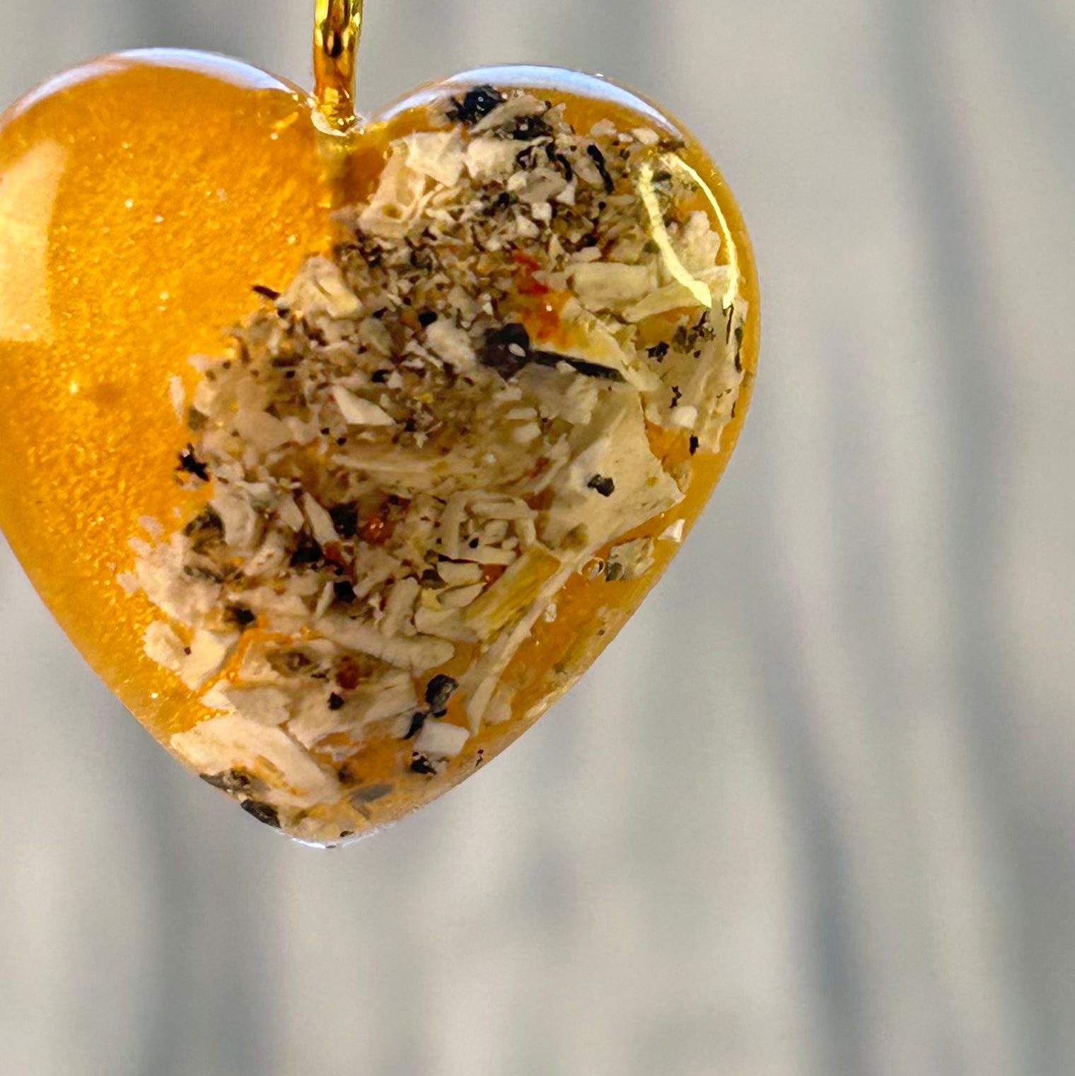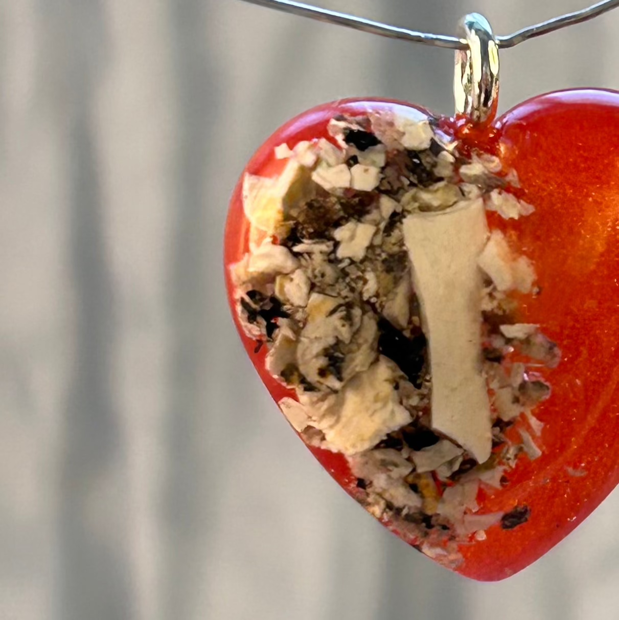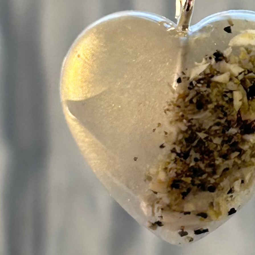 Un bijou hommage en forme de cœur, réalisé à la main avec les cendres de votre animal. Un pendentif unique, empreint de douceur et de mémoire.