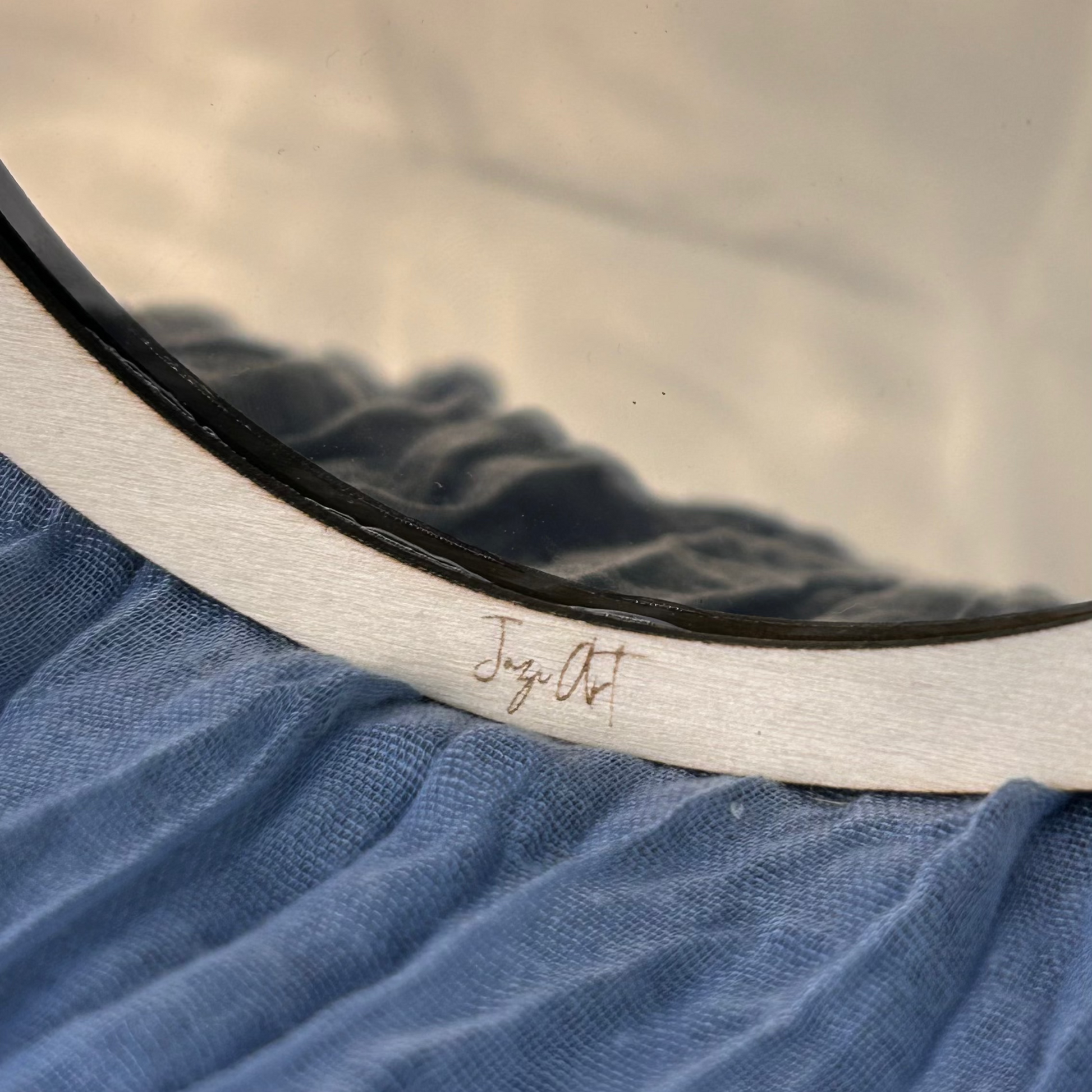 Découpé et gravé au laser dans notre atelier, ce miroir est parfait pour une chambre, une entrée ou un espace de méditation. Il peut aussi être offert comme cadeau inspirant à une personne chère.